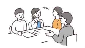 作成した原案について、サビ管・児発管とサービス提供担当者などの多職種で検討を行います。なお、個別支援会議は原則として利用者本人(児童の場合は本人及び保護者)の参加が求められており、本人の意向を直接確認するプロセスとその議事録を残すことが重要です。